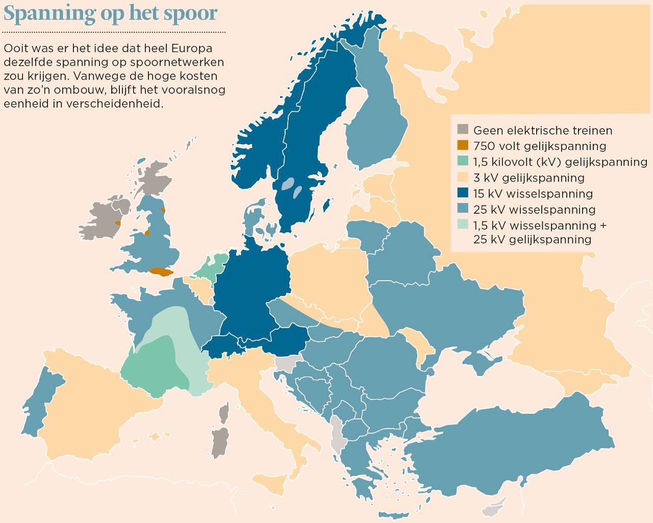 houden. Daarnaast is Nederland met 1500 volt een vreemde eend in de bijt. Met 3